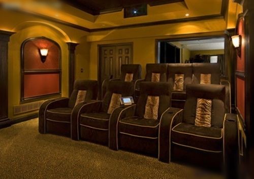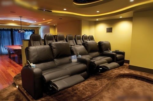 选用八张深色的真皮影院椅,不仅感觉非常舒适,而且与室内设计十分协调。