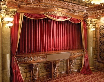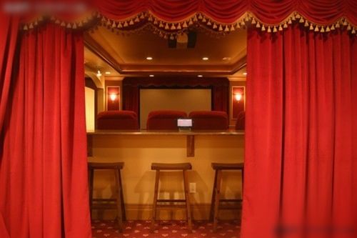 影音室采用欧式风格设计,而且屏幕周边运用手工雕刻工艺,尽显雍容华贵之风。