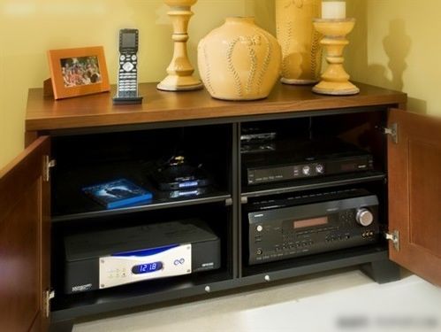 器材柜放置在屋内一角,使用者可以通过控制器进行操控,而连接音箱的线材则全部提前预埋墙内,保持室内美观。