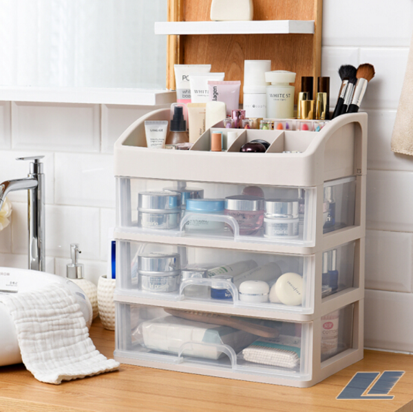 抽屉式透明化妆品收纳盒 塑料收纳箱 桌面整理盒 梳妆台护肤品置物架 透明款
