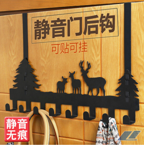 易时代 门后挂钩免钉壁挂门上挂衣架墙壁无痕粘胶粘钩强力承重衣服挂衣钩 小鹿(8钩)黑色