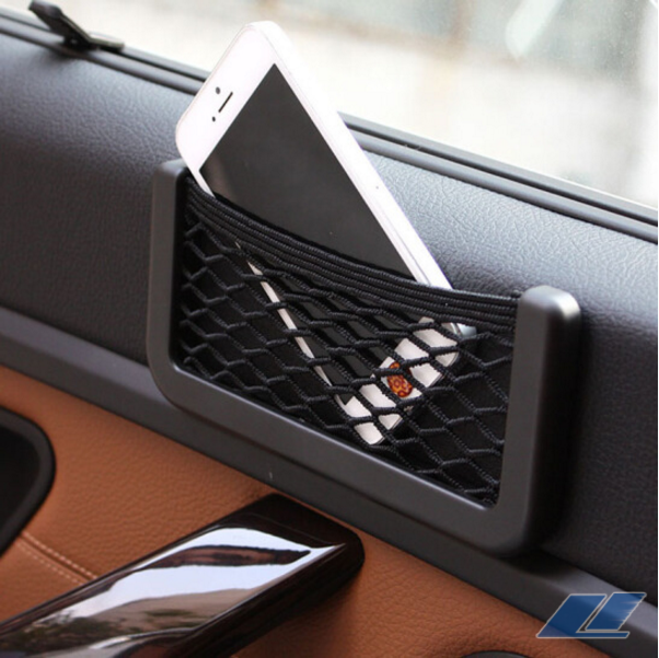 点缤 多功能车用手机置物网兜车内收纳汽车用品车载置物袋票据储物格杂物盒 大号黑色网兜-8cm*20cm 通用车型