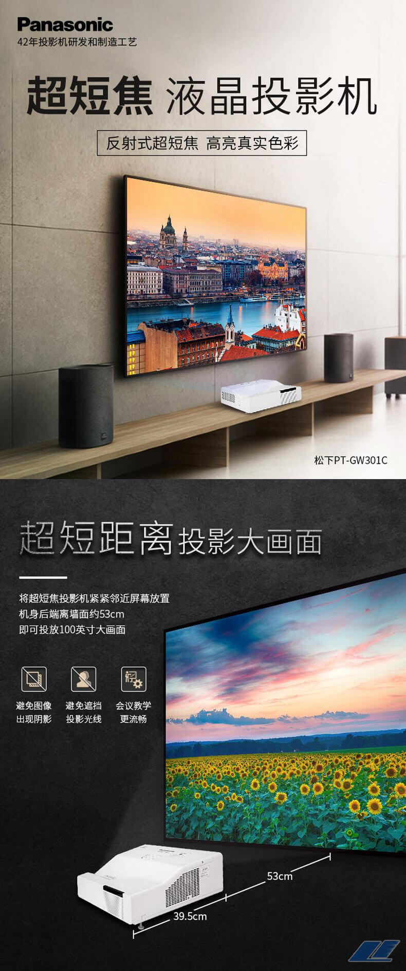 松下(Panasonic) PT-GW301C投影仪 短焦 办公 投影机