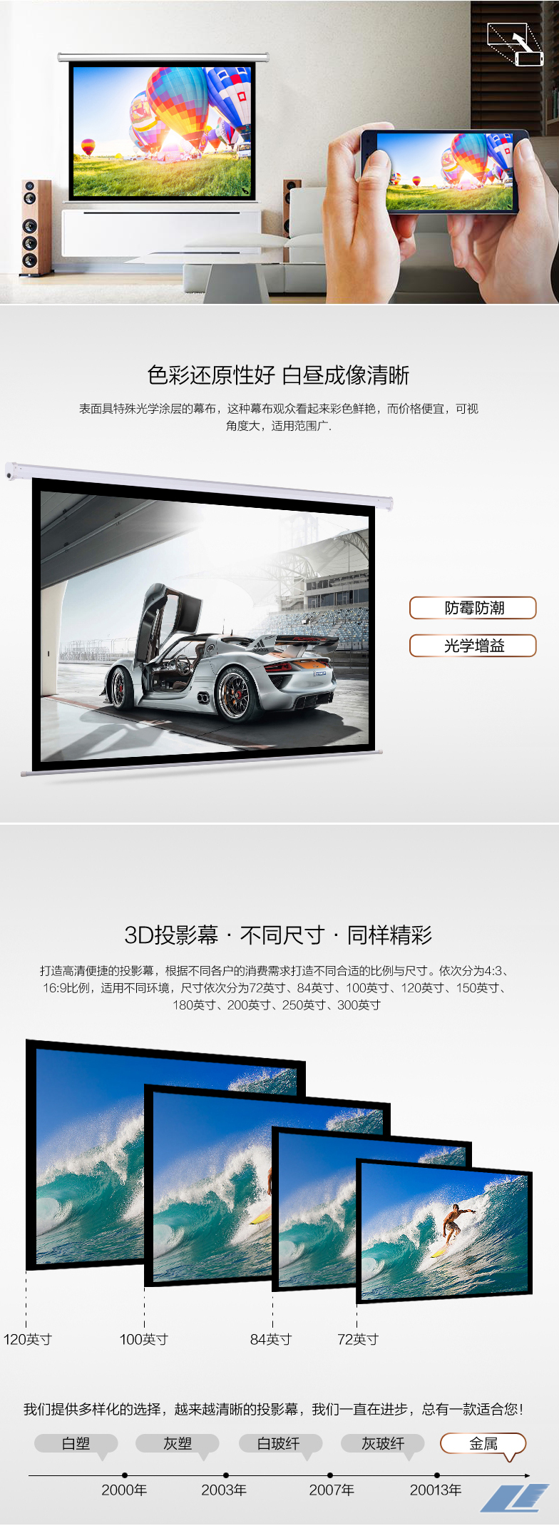 森禹 家用 教学用电动幕 120英寸4:3 白塑高清投影机幕布 投影幕布投影布