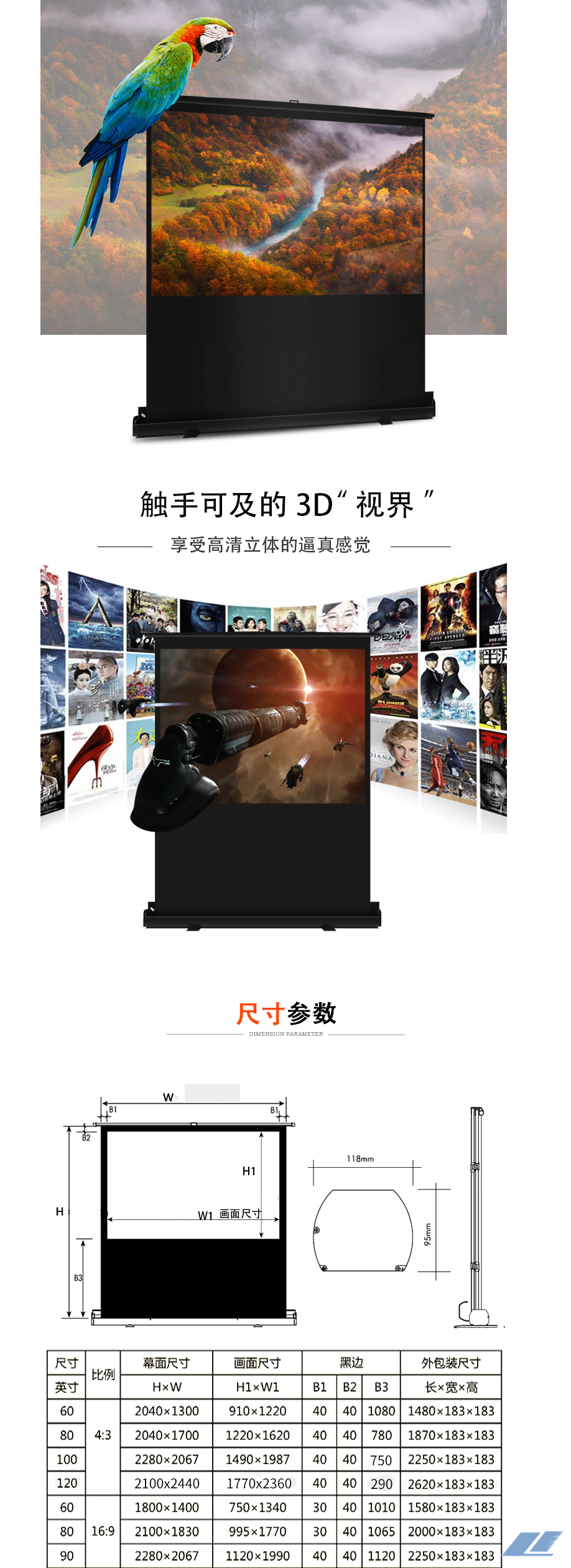 红叶 100英寸4:3地拉幕布 投影仪幕布 投影幕布 投影机幕布 幕布