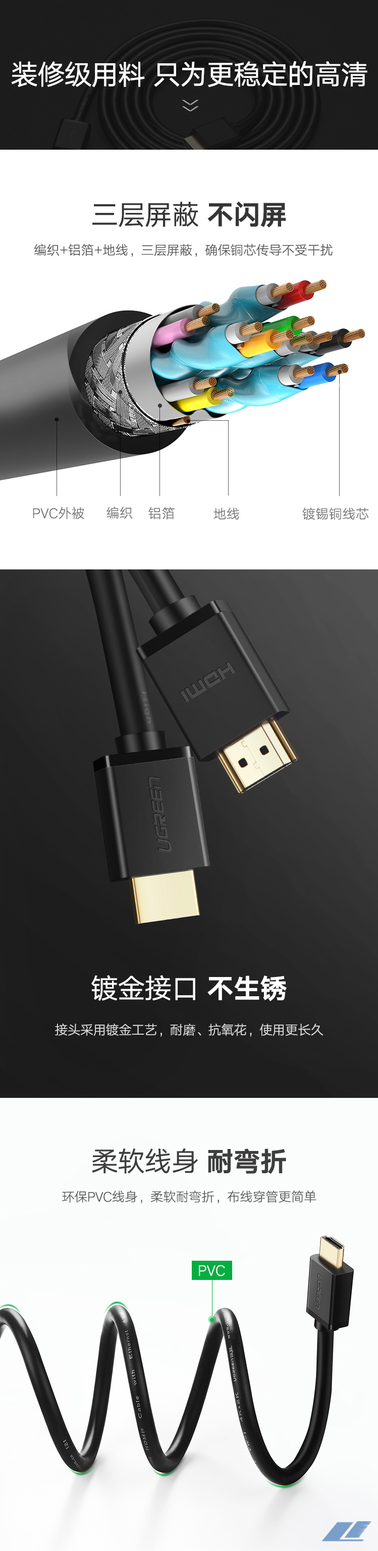 绿联(UGREEN)10米 HDMI线 数字高清线 3D机顶盒投影仪数据线 HDMI工程线 电脑连接电视视频线