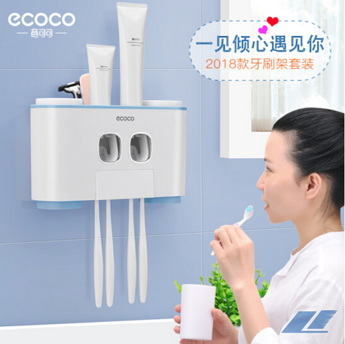 吸壁式牙刷架卫生间刷牙杯壁挂式牙缸漱口杯套装免打孔牙膏牙刷置物架 北欧蓝