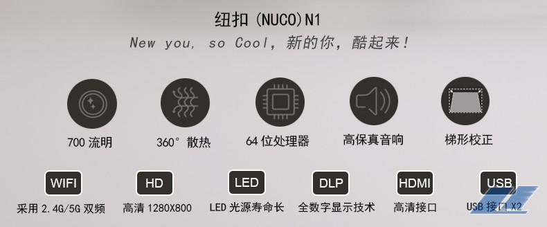 华录(Hualu)纽扣N1投影仪家用投影机微投800P高清 手机/微型/便携投影智能影院 纽扣(NUCO)N1香槟金